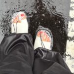 豪雨の中を歩く女性「何か違和感」→足元を見てみると…気づいた“違和感の原因”に「初めて見る現象」「めっちゃ笑ってごめんなさい」「溶けてる〜」