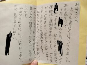 その日は学校から帰宅すると、ランドセルから「はい。」と手紙を差し出したそうです。