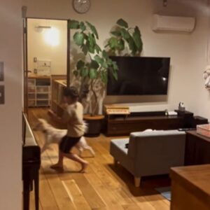娘さんと一緒にリビングにいた希くん。パパさんが帰ってきたことに気づくと、娘さんと一緒に玄関へ向かって走って行きました。
