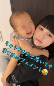 「チュー」を覚えたばかりの弟くん