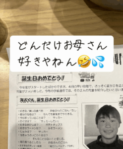 それは息子さんが誕生日の月のもので、学級通信にはいつもその月の誕生日の子の特集があり、息子さんの特集が掲載されていました。