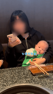 今回話題となったのは、家族で夕食に焼肉店を訪れた際の、15歳の娘さんと0歳の息子さんの姿です。