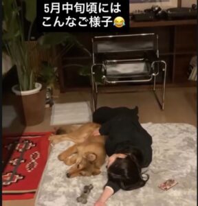 その後、トライアルを経て、ラッキーくんを正式に迎えることに。その頃には、横で一緒に眠れるほどに慣れていました。