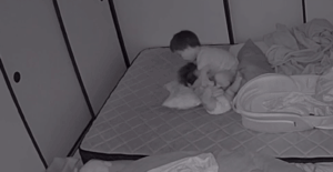 動画の中には、お兄ちゃんがズレた枕を直してあげる姿も収められていました。