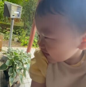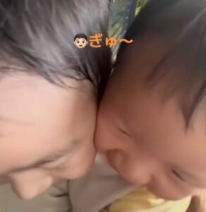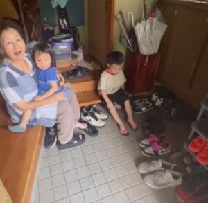 ママさんが弟さんを抱っこして家に連れて行くと、お兄ちゃんとおばあちゃんが玄関で迎えてくれました。その様子に、にっこりと笑顔になった弟さん。