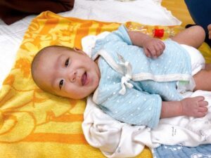 悩みながらも@natsumi.k_fleelanceさんは、お兄ちゃんも連れてベビーマッサージに参加しました。そこで、寝ているときにしか笑わなかった息子さんが、初めて起きているときに笑ってくれたのです。その後も少しずつ笑うことが増え、表情で反応してくれるようになりました。