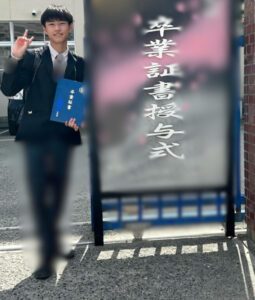 11ヶ月の頃は可愛らしい姿ですが、小学校の卒業式では身長が伸び、制服に身を包んだ息子さんのかっこいい姿が写っていました。