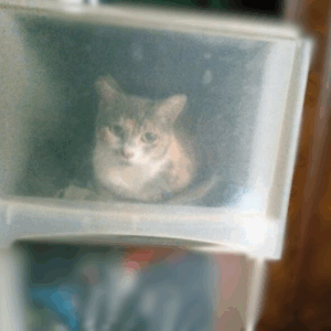 ケブちゃんはこの部屋のタンスの上にいることが多く、この日も「またいるのかな~」と何気なく部屋をのぞいたところ、収納ボックスに入っているケブちゃんと目が合ったといいます。