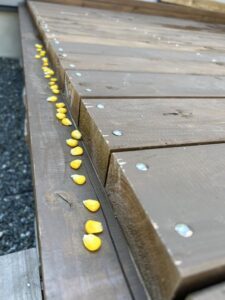 ふと娘さんの様子を見てみると、食べていたとうもろこしの粒を一つずつ丁寧に取ってウッドデッキの端に並べている光景が目に飛び込んできました。