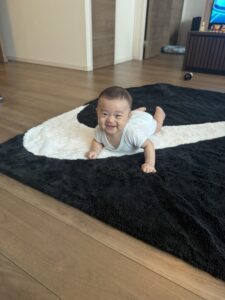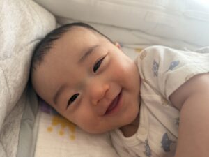 3ヶ月ごろには笑顔が増えたそうで「1番の笑顔は、寝起きで私に気づいたときに『にこー!』と笑ってくれるのがすごい嬉しいです」と話します。