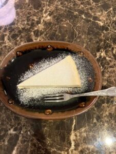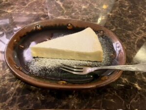 チーズケーキを注文したお客さんのお皿をよく見てみると…何やら文字のようなものが見えます。