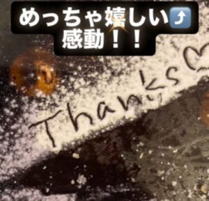 なんと、そこには「Thanks」のメッセージがあったのです。お皿のメッセージに「すごく嬉しかったし、びっくりしました」と@kissatenpokkeさん。