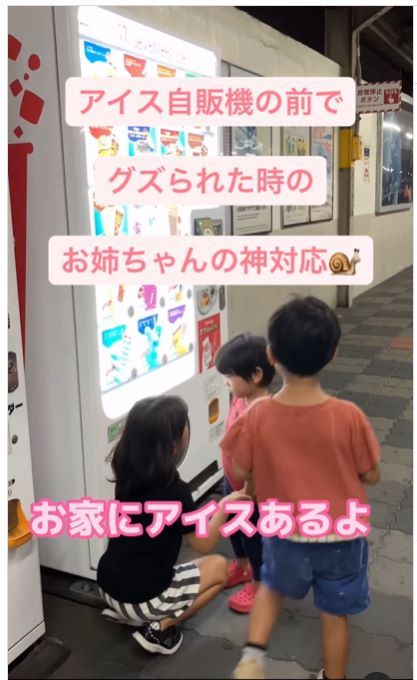 • アイスの自販機でしゃがみ込み駄々をこねる3歳弟。しかし次の瞬間…7歳姉の大人顔負けな神対応に「見習いたい」「お姉ちゃん凄い」2年経った現在の様子を聞いた