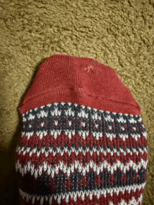 実際に直した靴下(@tabemono_dokushoさんより提供)