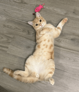 兄猫くんと何時間も追いかけっこをしたり、寝落ち寸前までおもちゃを握りしめていたりと、とにかく遊ぶのが大好きな子猫なのだとか。