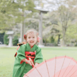 緑の着物を着たママさんの写真(@mao_fittxさんより提供)