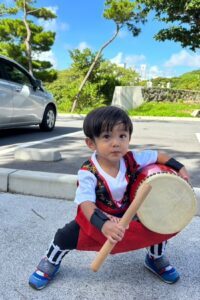 歩き出す前にエイサー祭りに連れて行ったことがきっかけで、次男くんはすっかりエイサーの虜になりました。