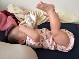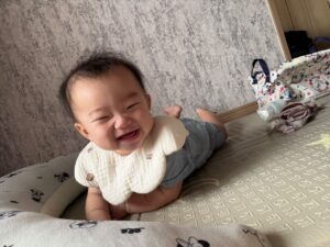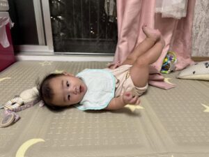 「ずり這いなどはまだなのですが、足の力は強いと思うので、足はよく動いてます!」と元気いっぱいな娘さんの様子も聞かせてくれました。