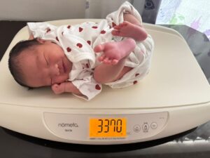 現在の写真と見比べると、お腹の中でも、生まれてからも同じポーズだったので「この体勢でお腹にいたのかぁ!」と思うと可愛く、ホッコリとした気持ちになったのだとか。