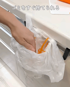 みやママさんは動画内で、フタの部分を車の後部座席に引っ掛けてぶら下げるほか、キッチンのシンク下扉に取り付けて使うアイデアも紹介しています。