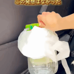 車の後部座席に引っ掛けられる(@みやママ-v2cさんより提供)