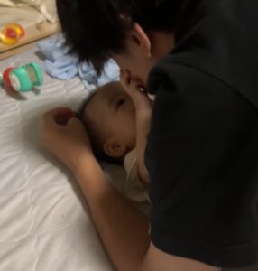 現在生後8ヶ月になった娘さんが6ヶ月の頃。その日は21時頃から抱っこしたり授乳したりと、寝かしつけようとしていましたが、娘さんはどんどん元気になってしまったとのこと。