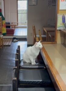 そんなシロくんの性格は、穏やかで優しい子。控えめで、お客さんの前には決して出てこないそうです。