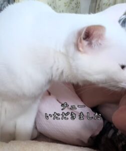 その頃、裏庭で真っ白な野良猫が2匹の子猫を出産。母猫と1匹は別の場所で保護されました。