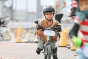 小さな体で懸命にペダルを漕ぐ姿は真剣そのもの。