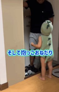 普段からもパパさんのお迎えをしているそうで「毎回走って玄関に向かいます!そして抱っこをおねだりするのがいつものルーティーンです」と投稿者さん。