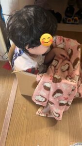 撮影当時の息子さんは、小さなダンボールの中に入って遊んでいたそうです。