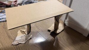 完成したテーブルは2本の脚で自立し、しっかりとバランス感覚を保っていました!
