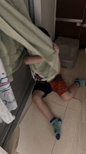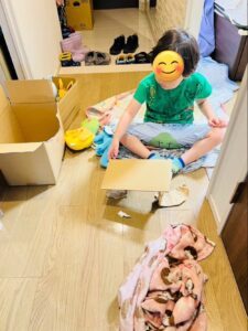 しばらくして「これでテーブル作って!」と、パパさんにダンボールを示してリクエスト。