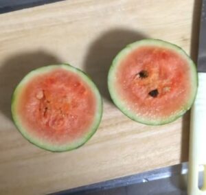 その後、スイカは冷蔵庫で冷やしてからティースプーンですくって食べたとのこと。意外にもしっかりとした甘みがあり、おいしかったそうですよ。