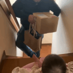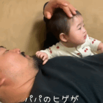 パパさんを待ち伏せする娘さん(@fuki__0611さんより提供)