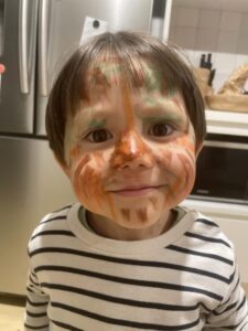お風呂あがりに6歳のお姉ちゃんと一緒に遊んでいた3歳の息子さんは、顔にお絵かきしてしまっていました。