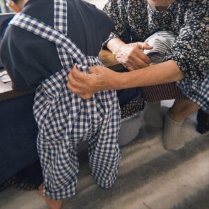 サイズチェックをするひいおばあちゃん①(@haru_room2727さんより提供)
