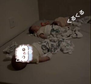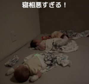 @neenetomitsugoさんが、3つ子のお子さんたちが寝ている様子をTikTokに投稿すると「不動のセンター」「時計みたいな子いる」などのコメントが寄せられ話題になっています。