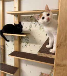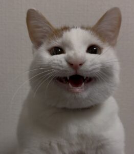 おこわちゃんは、写真の通りニコニコとした笑顔が印象的な子。普段は天真爛漫でおてんばな性格で、姉猫たちにちょっかいを出しては怒られても、まったく気にせず遊び続けるそうです。