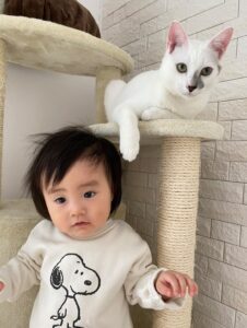 お迎え当時は娘さんもさくくんも0歳だったため、特に怖がることもなく、初めから自然とお互いに馴染んでいたようです。