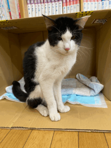 安蘭くんとの出会いは2025年2月。駅前で助けを求めるように鳴いていた安蘭くんを学習塾の生徒さんとその友人が保護して連れてきたといいます。泥だらけでやせ細り、体中に傷を負っていましたが、治療と介護を経て今ではすっかり元気に。
