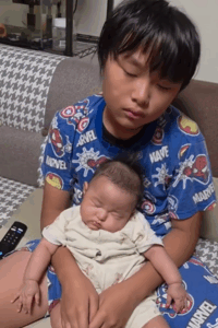 一方で「ちゃんと寝かせられなくてごめんね。お兄ちゃんも運動会の練習で疲れているのに…。一生懸命あやしてくれてありがとう」と、申し訳ない気持ちと感謝の思いが込み上げました。
