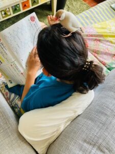 「1年生のときに『赤』と『青』を混ぜて書いてしまったとき『コレじゃ「むらさき」になっちゃうね』と言ったところ、それが面白かったようで漢字に興味を持ってくれました。それ以降『雲』をもくもくさせて書いたり『指す』を指の絵で表してみたりと、ときどきとんちを効かせて楽しく書いてます」と、娘さんにとって、漢字は「勉強」ではなく「表現の一部」になっているようです。