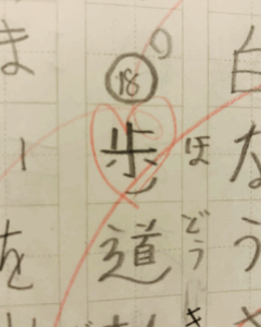 投稿されていたのは、小学3年生の娘さん(8歳)が書いた「歩道」という漢字。