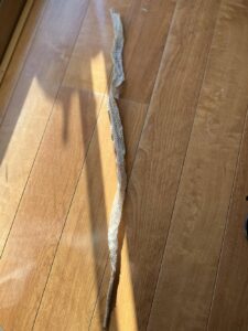 それは、息子さんが学校から帰宅して「ただいまー」とリビングの扉が開いた瞬間のこと。ママさんの目の前に、ヘビの抜け殻が差し出されました。