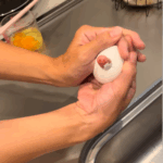 卵を持ったまま叫ぶ奥さん(@katsuobushi__0071さんより提供)