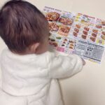 ピザのチラシを見つめる息子さん(@yuyubaby1121さんより提供)