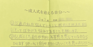 15歳の自分からの言葉(@iwamatsu_14さんより提供)
