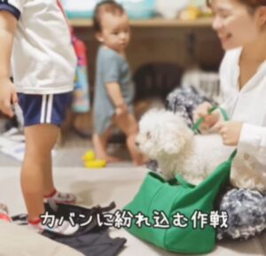 この日、次男くんの運動会に行くために準備をしていたママさん。すると、マルプーのぽち太くんがママさんの持っているカバンの中に入りました。