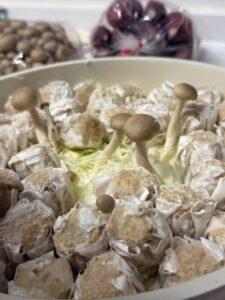 すると、シュウマイの中にきのこが生えているかのようにきれいに並べられていたのです。絵本などで見かけるきのこのように、ちゃんと生えているように並べてくれました。